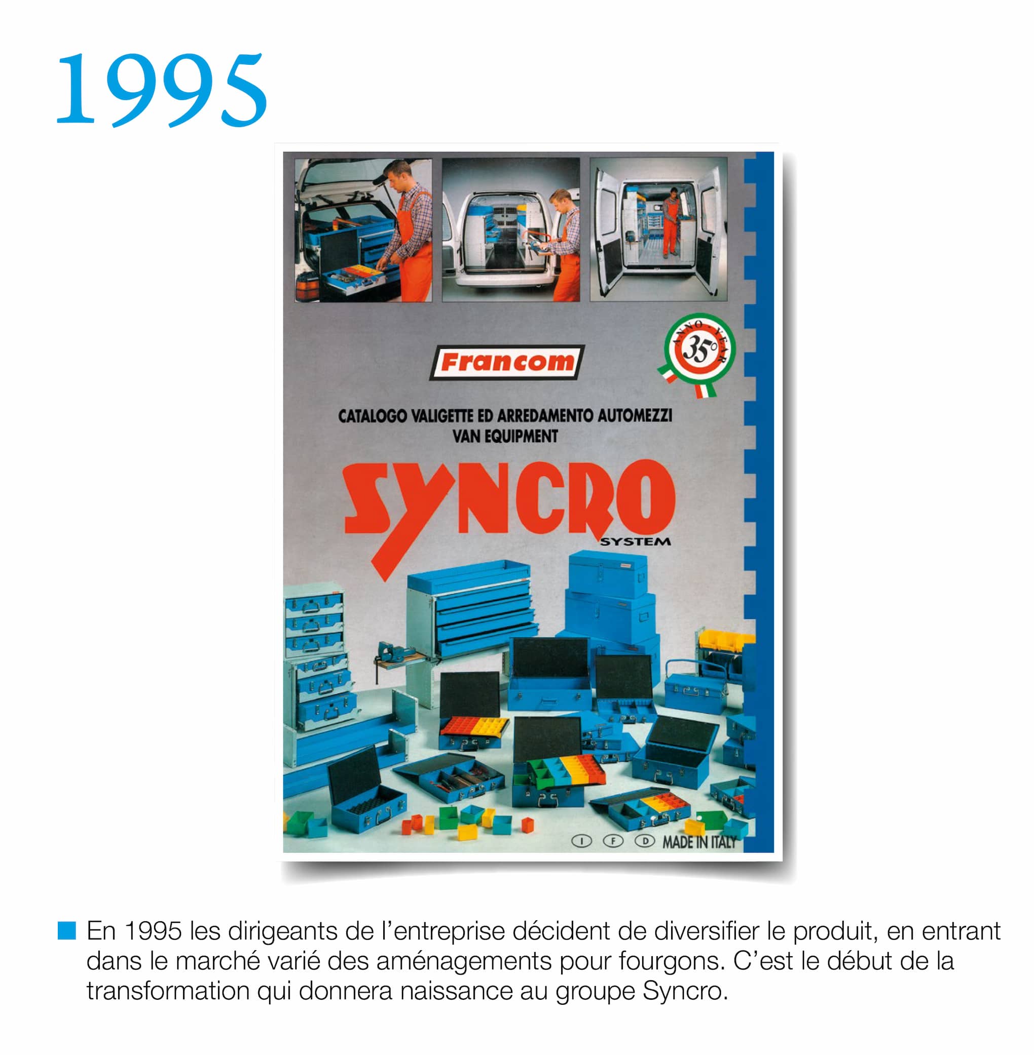 • À la fin des années 90, l’entreprise laisse tomber tous les autres produits pour se concentrer sur l’aménagement de fourgons ; le groupe Syncro est alors constitué et un réseau de revendeurs et installateurs spécialisés dans le système Syncro commence à se former.